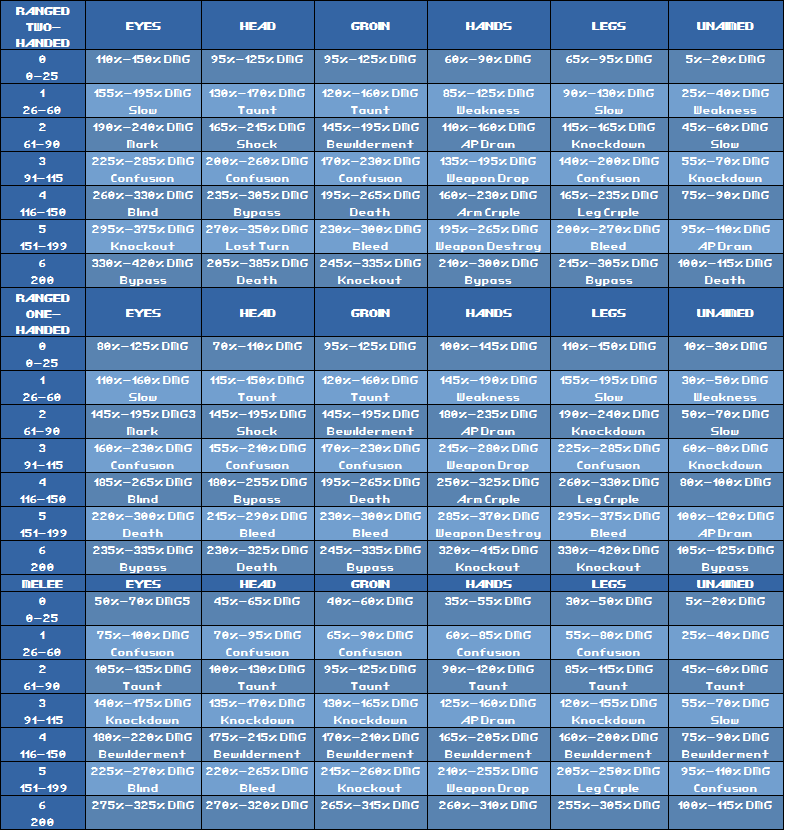 -Combat master using ranged critical table for melee attacks